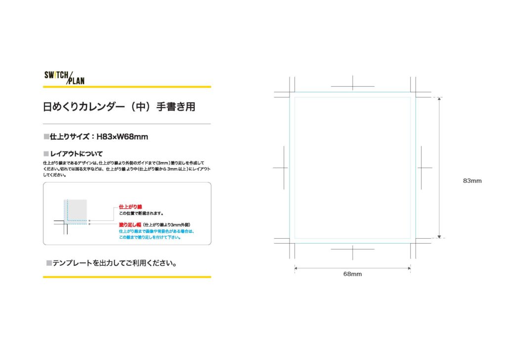 中サイズデータ83 × 68 mm のカレンダーのテンプレートです。コンパクトながら、存在感もある日めくりカレンダーです。
